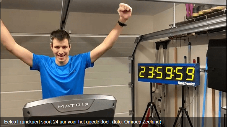 Wat een prestatie! Eelco Franckaert sportte 24 uur non-stop voor het goede doel. Met zijn actie haalde hij ruim € 10.000,- op voor onderzoek naar schildklierkanker binnen het UMC Utrecht.