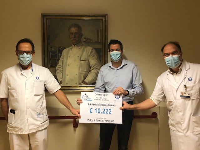Eelco: “Helaas is dit is niet voor iedereen zo vanzelfsprekend. Daarom wilde ik iets terug doen en me hiermee inzetten voor anderen. De warme band met Dr. Borel Rinkes en Dr. Vriens – de chirurgen die het schildklierkankeronderzoek mede leiden – hielp hierbij enorm. Het is zo belangrijk dat er geld wordt opgehaald. En het mooie is: het bedrag dat we opgehaald hebben, komt daadwerkelijk terecht bij de artsen die mijn vrouw hebben geopereerd.”