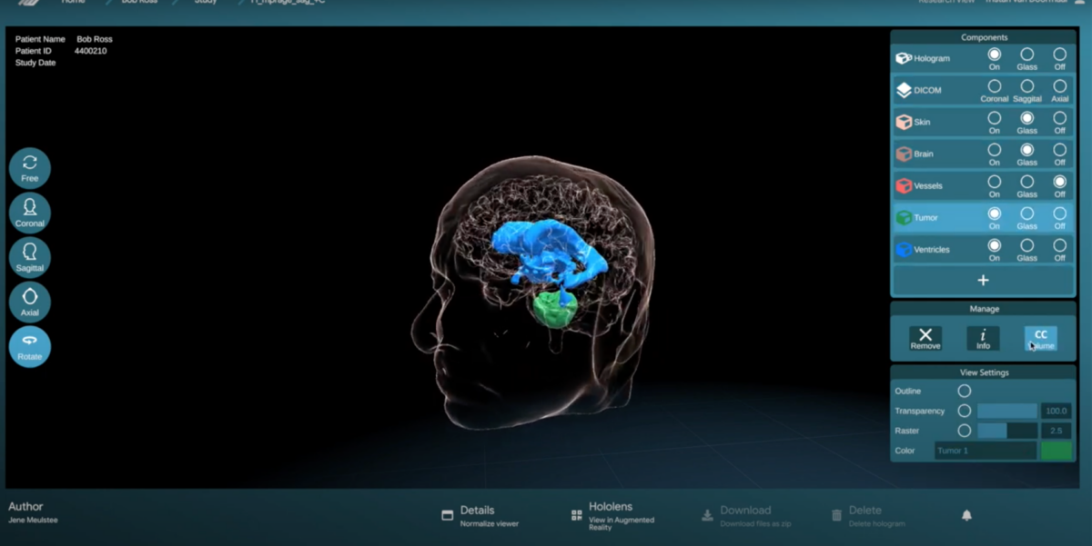 De hologrammen zijn te zien met een speciale 3D-bril, maar ook met een holografisch scherm en een smartphone of iPad. Van Doormaal: “Wat dit project bijzonder maakt, is de snelheid voor eindgebruikers waarnaar we streven. Hierdoor kunnen 2D-zwart-witscans door de chirurg uiteindelijk hopelijk met een klik direct omgezet worden in kleurrijke 3D-modellen, en wordt kunstmatige intelligentie dus in de dagelijkse praktijk bruikbaar.