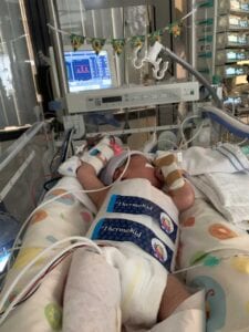Al in de ambulance werd Novans lichaamstemperatuur teruggebracht naar 33,5 graden en werd hij kunstmatig in slaap gehouden, om zo verdere hersenschade te beperken. Pas toen er later die dag een ambulance vrij was, kon ik ook zelf naar Utrecht worden overgeplaatst. Het was zo akelig om hem daar te zien liggen, aan al zijn slangetjes. Hij was – en is – een prachtige baby. Maar wat was hij ziek.